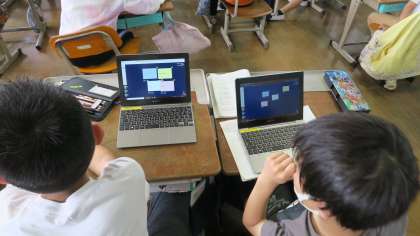 社会科の時間には,ロイロノートを使って,担任の先生から資料を送ってもらったり,webページへ飛んだりしました。子どもたちは,新しく教えてもらう機能に驚きつつも,「面白い!」と目を輝かせていました。これから調べ学習などでもロイロノートを活用していく予定です。