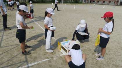体育では,遠投の公開授業がありました。多くの先生が見守る中,子どもたちはどのようにボールを投げれば遠くまで飛ばすことができるのか,ビデオで投げ方を記録したり,話し合ったりすることができました。