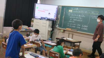 算数では,大きな数の学習をしています。今日は,100倍,1000倍した数について考えました。0を増やすといいという意見が出たあと,なぜ0を増やすのか,その理由を考えて自分の言葉で説明することができました。