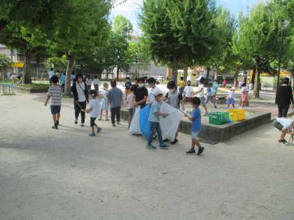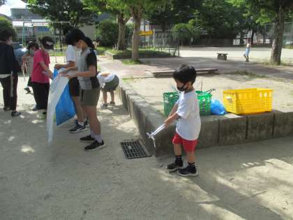 久々のクリーンキャンペーンがありました。これまでは雨で中止になることが多かったのです。楽しみにしている低学年の子どもが,まだかなぁ,と児童会のお兄さん,お姉さんを待っていました。