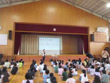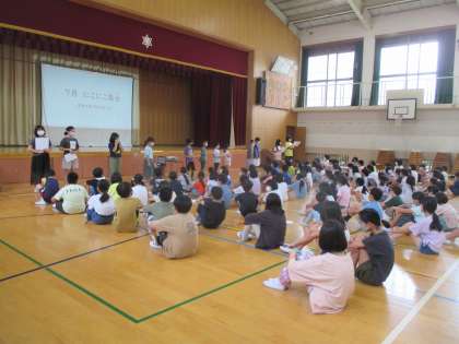7月のにこにこ集会がありました。蒸し暑い体育館でしたが、一生懸命話を聞くことができていた子どもたち。姿勢の良い子どもも多かったです。立派です。