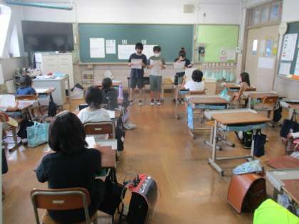 今日は6時間目に町別児童会を行い,集団下校を行いました。今日は夏休みに向けて,楽しい夏休みにするために気を付けなればならないことを6年生を中心に確認しました。また1学期を通して通学路で感じた危険なども共有することで安全に登下校できるようにみんなで確認しました。