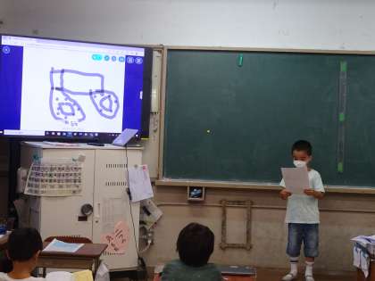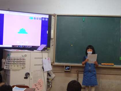 きのう書いた文しょうをつかって、みんなの前ではっぴょうしました。