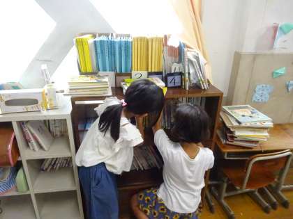 教室で、みんなが読んだ本を せいとんしてくれました。
