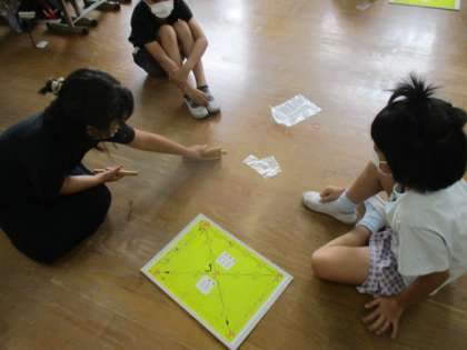 今日は,今月のにこにこ目標に沿って,にこにこ学習を行いました。お隣の国を知ろうということで,コリアみんぞく教室の先生に来ていただいて,コリアの伝統遊びユンノリを体験しました。日本のすごろくに似た遊びで子どもたちもすぐに理解して,楽しんでいました。身近な国ですが,知っているようで知らないことがたくさんあります。だからこそ,こういった機会にしっかりと学習して知ることが大切ですね。