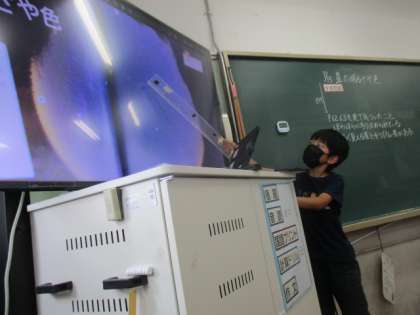 理科では、月の明るさや色についての学習をしました。はじめに教科書の星空の写真を見て、気づいたことを話し合いました。星もそれぞれ色や明るさが違うことに気づくことができました。そのあとは、星座早見の使い方を学習しました。今日お家に持って帰り、3連休の中で観察できそうであればしてくるように伝えています。無理のない範囲で構いませんので、夜のお休み前など、星が見えるようであれば空を眺めていただければと思います。