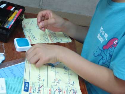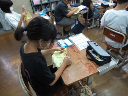 練習用の布を使って波縫いと返し縫いの練習をしました。