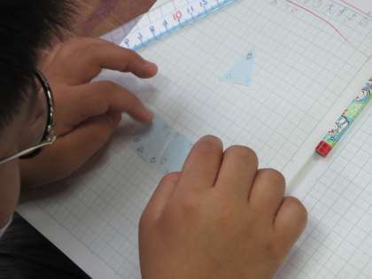 合同な三角形を敷き詰めることで,平行な線が作れることに気がつきました。