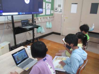 今日の国語はオンラインも含め、久しぶりの全員そろっての学習でした。画面上で映像を共有できたら一緒に学習できます。みんなで順番に「きつねのおきゃくさま」を音読しました。オンラインで声を届けようと思うと、いつもよりはっきりと話さなければいけないので良い練習になりました。遠く離れていても一緒に学習できるっていいですね。