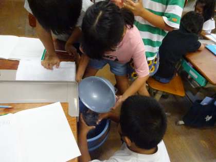 1Lの大きさをもとに よそうをしたり、けっかをもとに つぎの水のりょうを考えたり、グループで学しゅうすることができました。