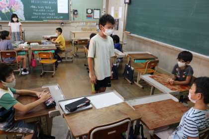 夏休みの思い出についてグループで発表をしました。聞き手の子どもたちが積極的に質問や感想を伝えたり,話し手が楽しそうに話していたりして良い時間になりました。楽しく過ごせたようで何よりでした。