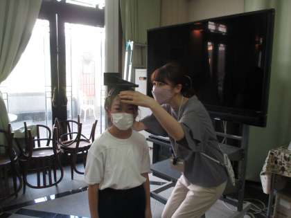学校で一番けがが多いのは、運動会練習のある9月だそうです。そこで、けがを防ぐためのストレッチを久野先生に教えていただきました。元気に運動会に出場するためにもがんばっていきましょうね。身体計測で、身長と体重をはかりました。大きくなったように見えていたのが数字化され、やっぱり!と感じました。