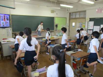 今日は2学期の身体計測の日でした。なんと4年生では3cm以上身長が伸びている子がいたり、全員1cm以上伸びていたりと大きく成長していました。身体計測の前の保健指導では、養護教諭からけがをしにくい体づくりということでけがについての保健指導をしていただきました。早速明日の朝からストレッチをみんなで取り入れていきたいと思います。