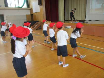 運動会のダンスの練習を頑張っています。今日が2回目なのに,もう1つ目のダンスをほどんど覚えてしまうほど,上手に踊れました。2年生に踊っている所を見てもらい「とても上手に踊れている。とても楽しそう」とほめてくれて,ますます元気よく踊れるようになりました。