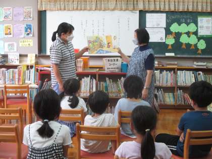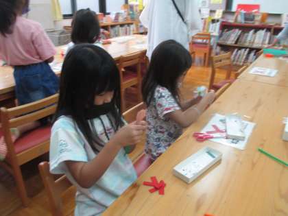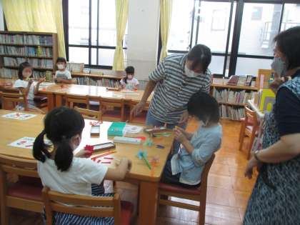 毎月1回、低学年向けに「ぶっくままクラブ」が行われます。読み聞かせや工作など楽しいことがいっぱいです。楽しみにしている子どもたちもいます。
