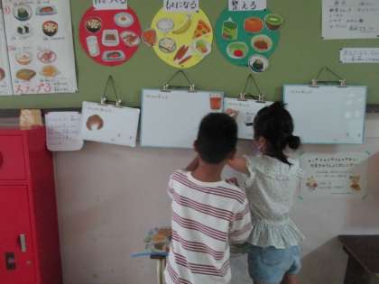 給食室前の朝ごはんのボードが今日もとても盛り上がっていました。