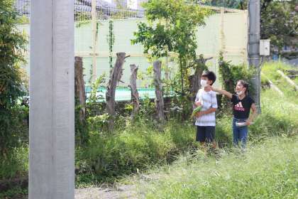 アメンボやちょう,バッタやダンゴムシはどのあたりにいるのか,グループで校庭探検に行きました。発見すると大きな声で友だちを呼び,発見した喜びを分かち合っていました。協力して探す姿が素敵でした。