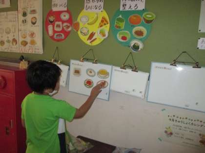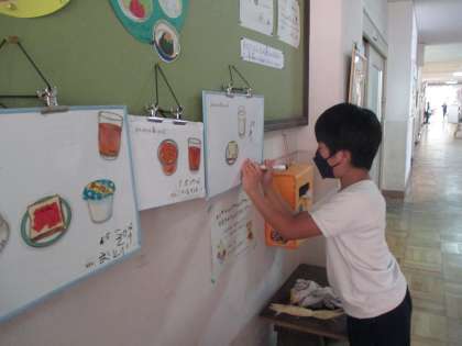 栄養教諭の先生がつくってくださった朝ごはん紹介コーナーに、えのき学級も挑戦してみました。今日の朝ごはんは…と思い出しながらつくっていました。いつもご用意ありがとうございます。