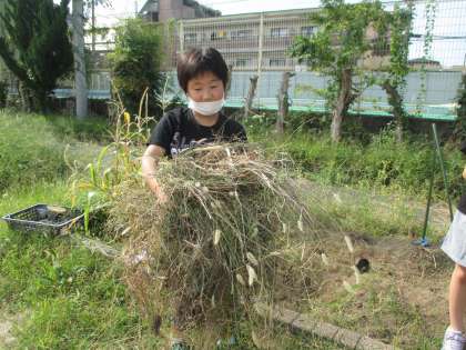 コンポストに入れるために抜いて乾かしておいた雑草たち。さあ運ぼうと思ったら、ひとりでこんなに持ってくれました!おかげで一気に作業が進みました。ありがとうございました。