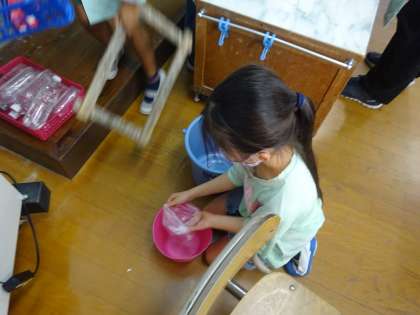 きゅう食のときに、ストローバケツが出ていないことに気づいて、出してくれました。
