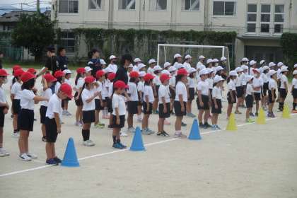 運動会の全校練習がありました。全校練習をすると運動会が近づいていることが実感できます。入場は、金管バンドの演奏に合わせて少しだけ行進しました。全校ダンスや応援の練習もありました。あと2週間ちょっとで本番です。緊張感が出てきましたね。