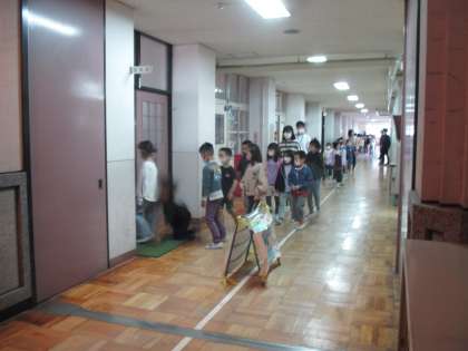 今日は水害の避難訓練でした。子どもたちは落ち着いて避難することができていました。