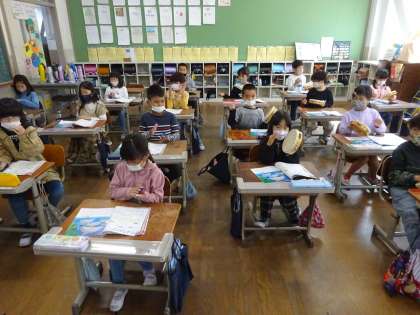 じゅぎょうの後半は、学しゅうはっぴょう会の歌のれんしゅうです。