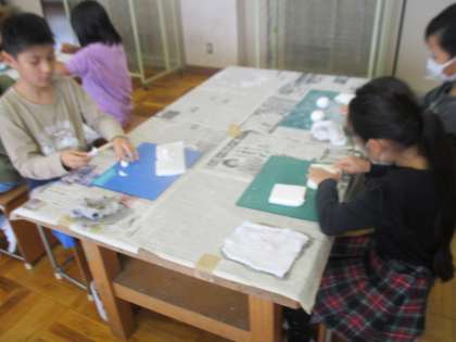 今日の図工の学習では、紙ねんどを使って、立ち上がる作品作りをしました。伸ばしたり、巻いたり、ねじったりいろいろな工夫をしながら立ち上げていました。中には、鴨川から連れてきたのかなと思われる…