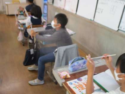 理科の学習では、骨の学習から筋肉の学習へと移行する段階の学習でした。手作り模型を使って、筋肉がどのように骨を動かしているのかということを目で見て考えることができました。