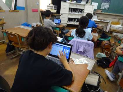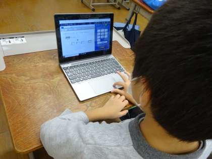 算数の学しゅうには、タブレットたんまつをつかって かけ算のれんしゅうをしました。