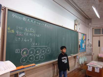 今日は4のだんの九九をつかって、文しょうもんだいを ときました。