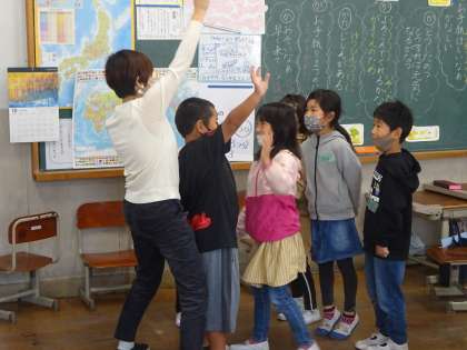 グループごとに、1まいの写真を見て そうぞうを ふくらませます。