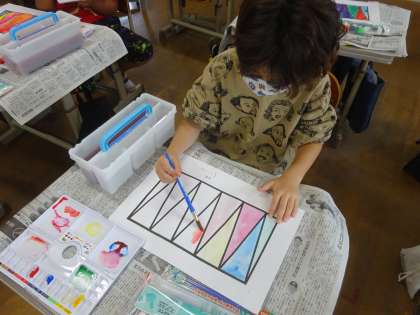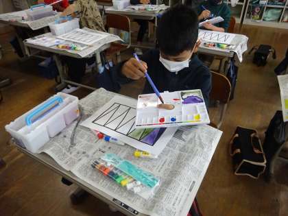 できあがった作ひんには、みどりや むらさきなど もあり、色をまぜる楽しさも見つけました。