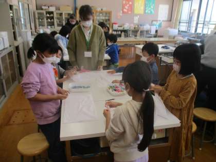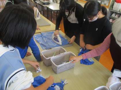 今日はドリームの学習の一環で「京鹿の子絞体験」を行いました。実際に伝統工芸士の方に先生として来ていただき、体験をさせていただきました。白色無地のハンカチを輪ゴムや割りばし、ビー玉、洗濯ばさみなど身近なものを使って模様をつけました。