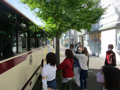 絶好の山の家日和です。保護者の方に見送られながら5年生全員で元気に出発しました。