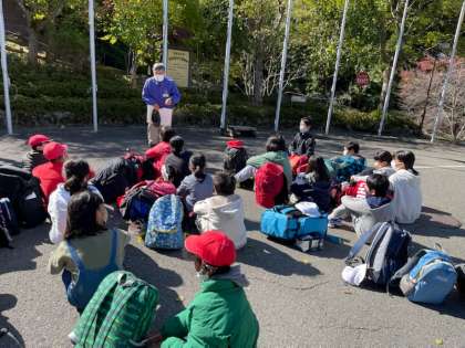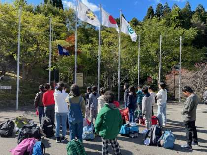 山の家に到着いたしました。その後、入所式を行いました。しっかりと話の聞ける子どもたちで挨拶もバッチリです。