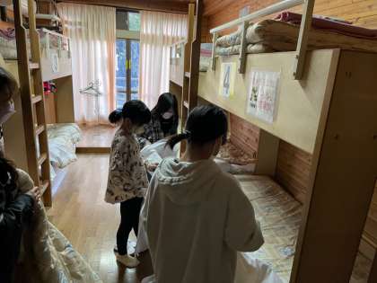 宿泊棟でゆっくりした時間を過ごしました。部屋でゆっくり、みんなで集まっておしゃべりなどそれぞれで楽しみました。男女とも仲が良く見ていて気持ちがいいです。