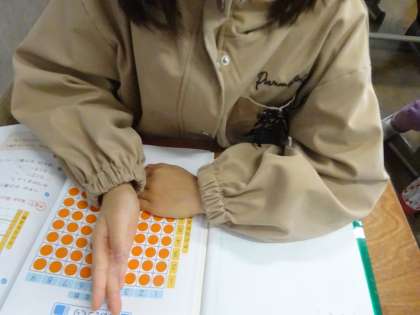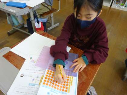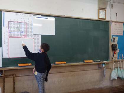 今日は、数図ブロックがならんだような 図をつかって、6のだんを考えました。