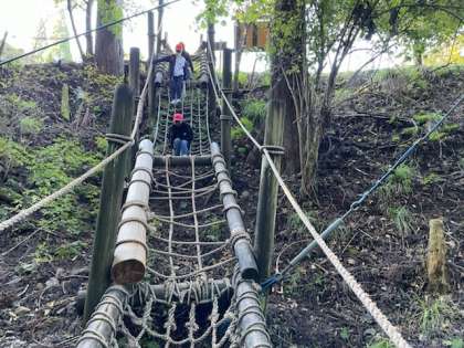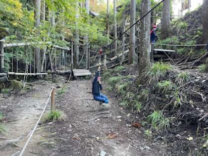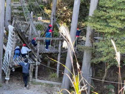 冒険の森でアスレチックを楽しみました。笑い声と楽しい歓声がたくさん聞こえました。