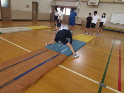 得意,苦手がはっきりと出やすいマット運動ですが,子ども達は楽しく真剣に取り組んでいます。
