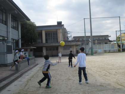 中間休み、みんなで運動場に遊びに行きました。小さなドッジボールコートで、受けたり逃げたり大忙しのドッジボール。体を動かして遊ぶって気持ちいいですね。