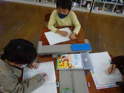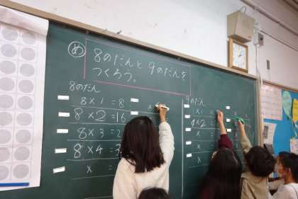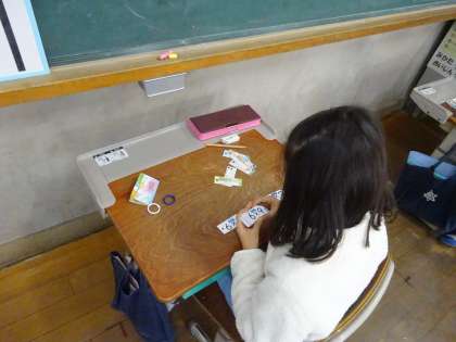 すきま時間に、九九カードをつかってれんしゅうするすがたも すてきです。