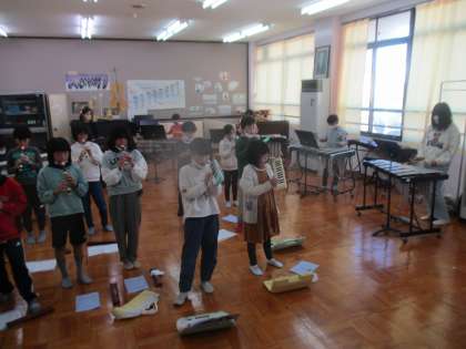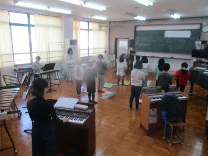 明後日から体育館で練習するということで子どもたちの練習やパートごとの確認がより細かくなってきています。今日の合奏の全体練習では、リズムを担当している大太鼓と小太鼓の2人が聞く側になって他のパートの演奏を聴き、アドバイスを送ってくれていました。明日音楽室で最終確認をして、体育館での練習に移行していきたいと思います。