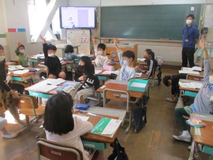 国語の時間では,身近にある知らせたいもの,見せたいものをどのように,みんなに分かりやすく伝えるのか学習を行っています。みんなに分かりやすくするために絵をかいてみたり,見てほしいところをみつけて書くなど色々な意見が出ていました。みんな,よく考えて発表をしていました。知らせたいもの,見せたいものがたくさんあるんですね。