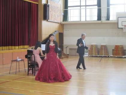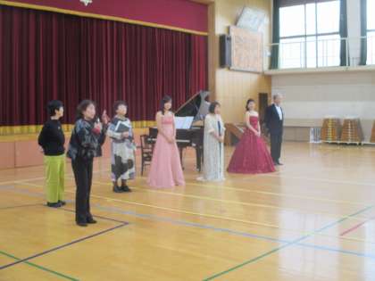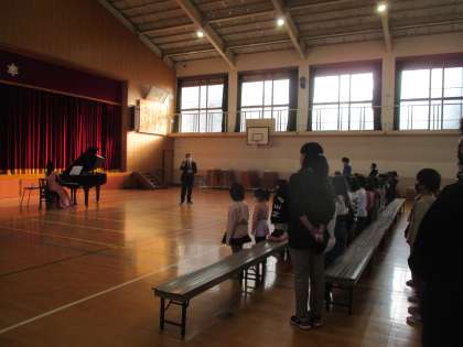 子どもたちは鑑賞態度もよく、心にしみる歌声とピアノの音色に聴き入っていました。校歌をみんなで歌った時には、体育館いっぱいに響く歌声で歌っていて、涙が出るくらい感動しました。
