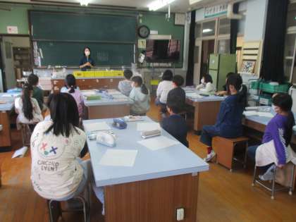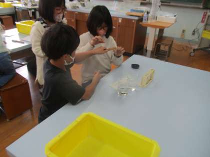 これまでは教室を基本として、運動場やドリームワールド、畑での学習をしてきた4年生でしたが、理科室での学習が始まりました。安全面などの理科室でのルールなどをきっちり確認した後、実験に取り組みましたが、やはり目の前で変化が見られるということで子どもたちは食い入るように実験を行っていました。