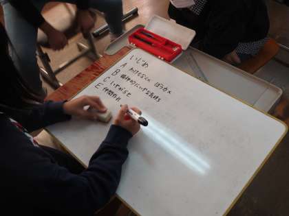 身近に起こりそうな出来事を元に,何がいじめになるのかを考えました。