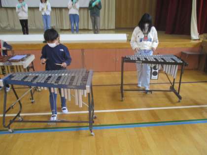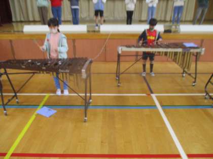 今日もしっかりと体育館で合奏や一連の流れを確認しながら練習を行いました。中でも、木琴、鉄琴の2人ずつのパートがお互いの息をを合わせて演奏できるように工夫しながら練習していました。2人の音色がそろったときの素敵な響き最高でした!
