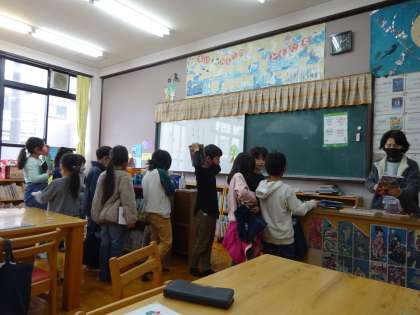 朝読書の時間に、本がかりさんが読み聞かせをしてくれました。