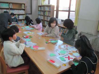 低学年の毎月のお楽しみ「ぶっくままクラブ」がありました。楽しい絵本の読み聞かせや工作を楽しみました。今回の工作はクリスマスリース。もうそんな季節なんですね。子どもたちはクリスマスを楽しみにしながら、笑顔で工作を楽しんでいました。